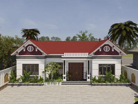 Dưới đây là bản vẽ nhà cấp 4 mang vẻ đẹp của 1 mẫu thiết kế biệt thự đẹp, mời các bạn tham khảo.. Mẫu thiết kế nhà cấp 4 đẹp như biệt thự dưới đây vừa mang phong cách hiện đại vừa có những nét rất truyền thống với mái ngói đỏ. Hiện nay, các mẫu nhà cấp 4 đẹp 1 tầng đang là lựa chọn của rất nhiều gia đình ở cả nông thôn và thành thị.